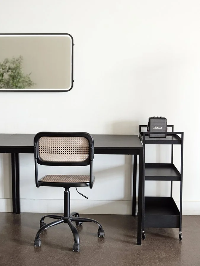 With soaring 16-foot ceilings and a spacious 25’ x 14’ cyclorama wall, the studio is perfectly suited for photography, film, commercial shoots, and creative productions. The space features polished concrete floors, a classic wainscoting accent wall, and modern furnishings that elevate any setup.